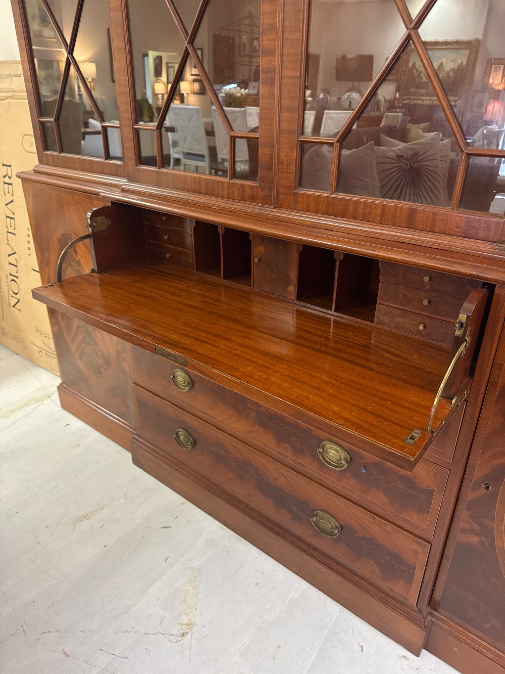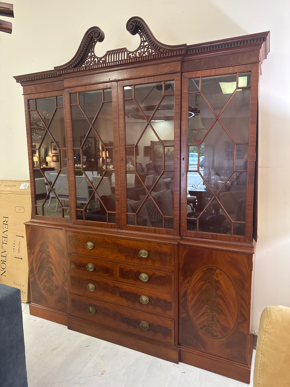 Baker Furniture Vintage Georgian Style Mahogany Breakfront Bookcase