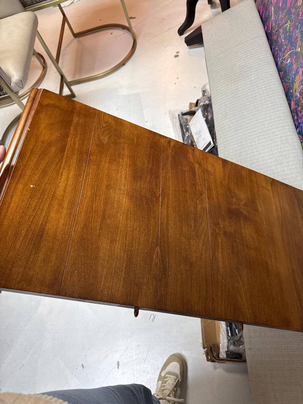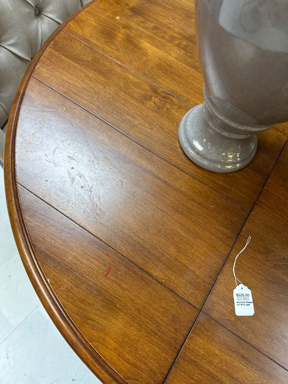 44 inch table without leaf. one 18 inch leaf included